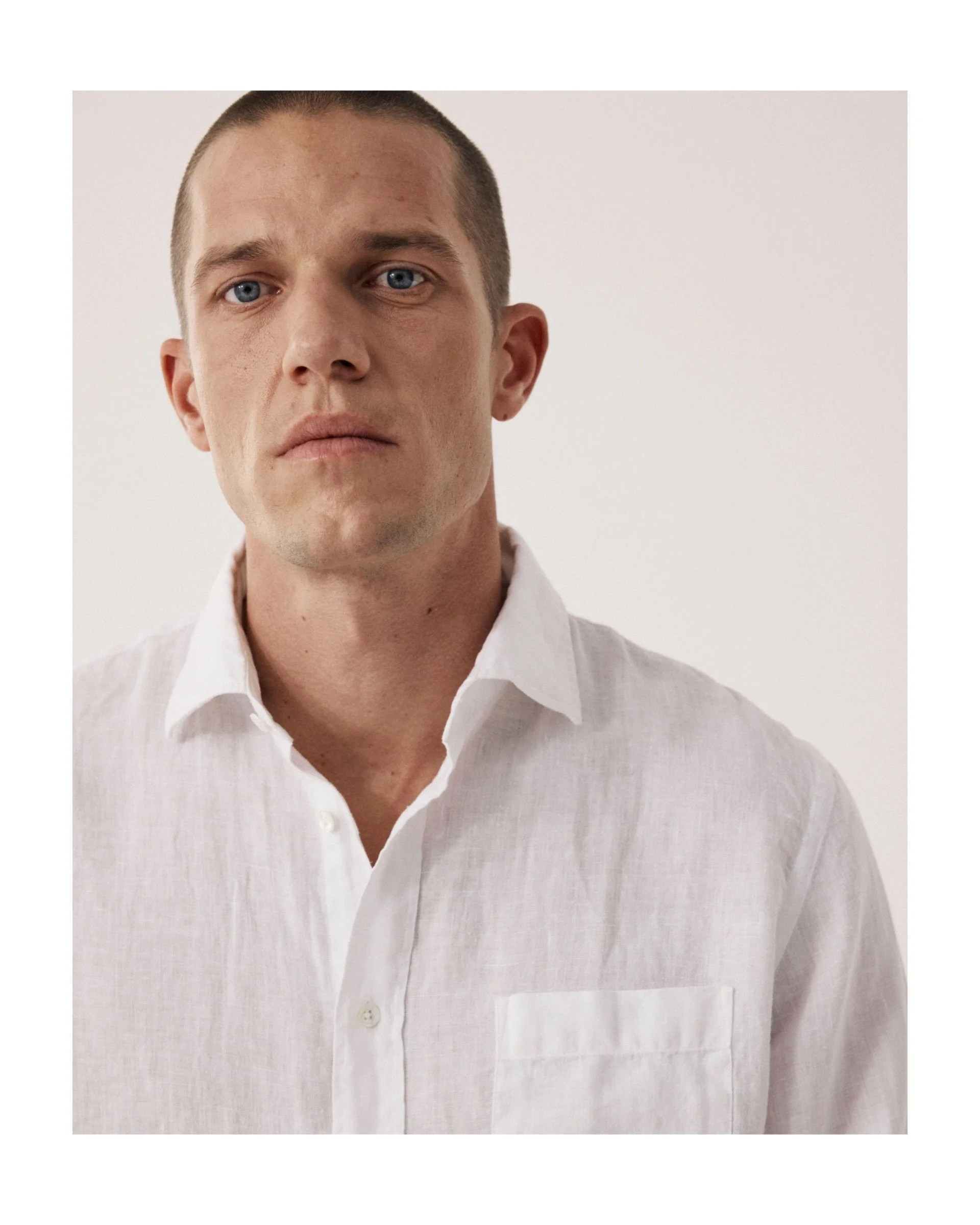 The PAUL men's linen shirt is a classic in Hartford's summer wardrobe. Made from linen harvested in France.