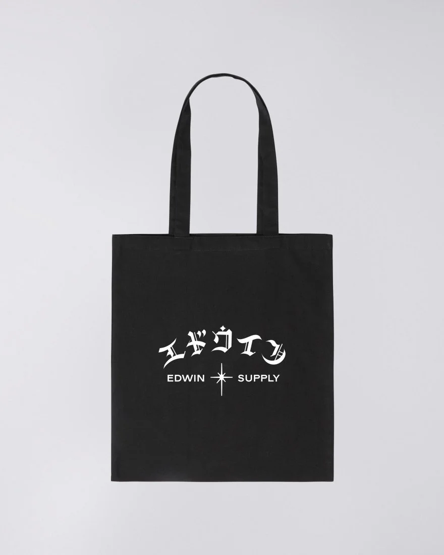 All Products › EDWIN - TOTE BAG BLACK GOTHIC KATAKANA Image 1 of 2 Image 2 of 2 EDWIN - TOTE BAG BLACK GOTHIC KATAKANA £12.00 EDWIN Gothic Katakana Print on FrontDimensions: 42,5cm x 39cm100% CottonMade in IndiaItem Number: I014804_89_GQ Add To Cart Added! EDWIN Gothic Katakana Print on FrontDimensions: 42,5cm x 39cm100% CottonMade in IndiaItem Number: I014804_89_GQ