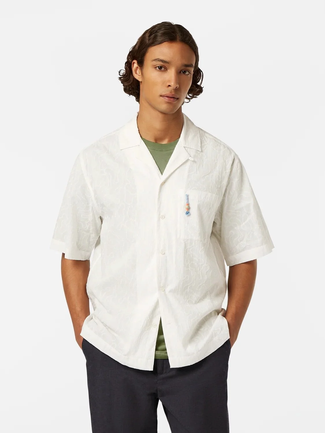 The Embroidered Short-Sleeved Relaxed-Fit Shirt offers a distinctive look with its unique embroidery, combining comfort and creativity for relaxed summer days.