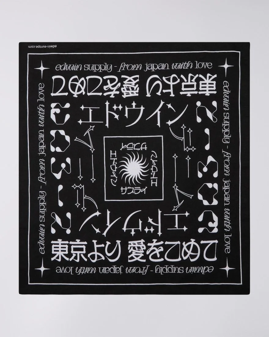 The EDWIN Bandana is a black, square neckerchief made from 100% cotton, adorned with our iconic branding.