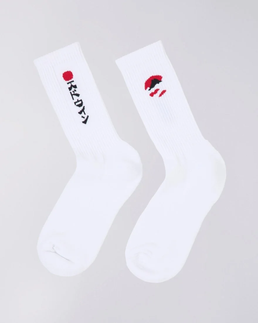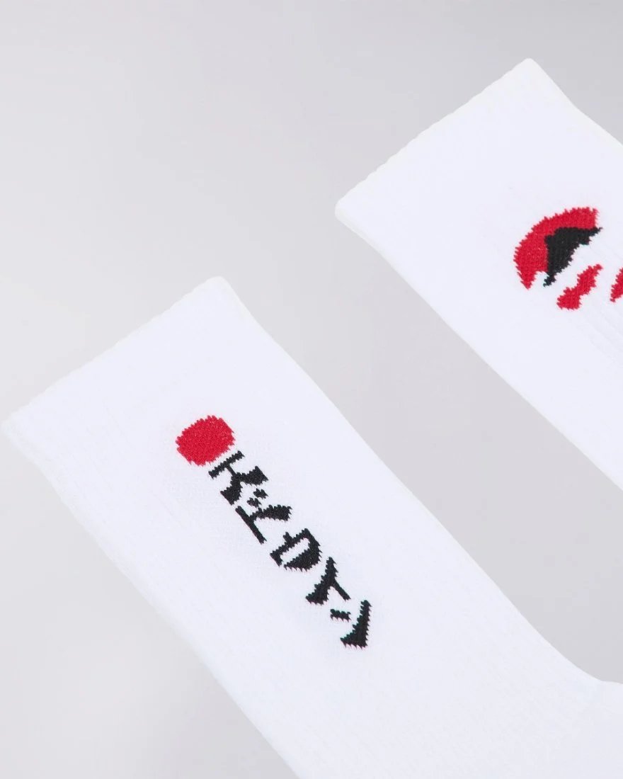 Socks knitted with stripes and jacquard artworks