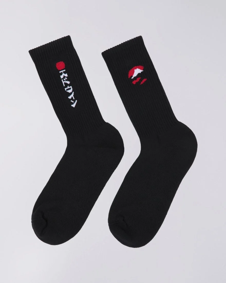Socks knitted with stripes and jacquard artworks
